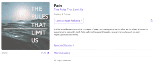 31 Aug 2023 – The You Project #1278 – Dr Joshua Pate https://podcasts.apple.com/gb/podcast/1278-pain-science-dr-joshua-pate/id1342430567?i=1000626215337